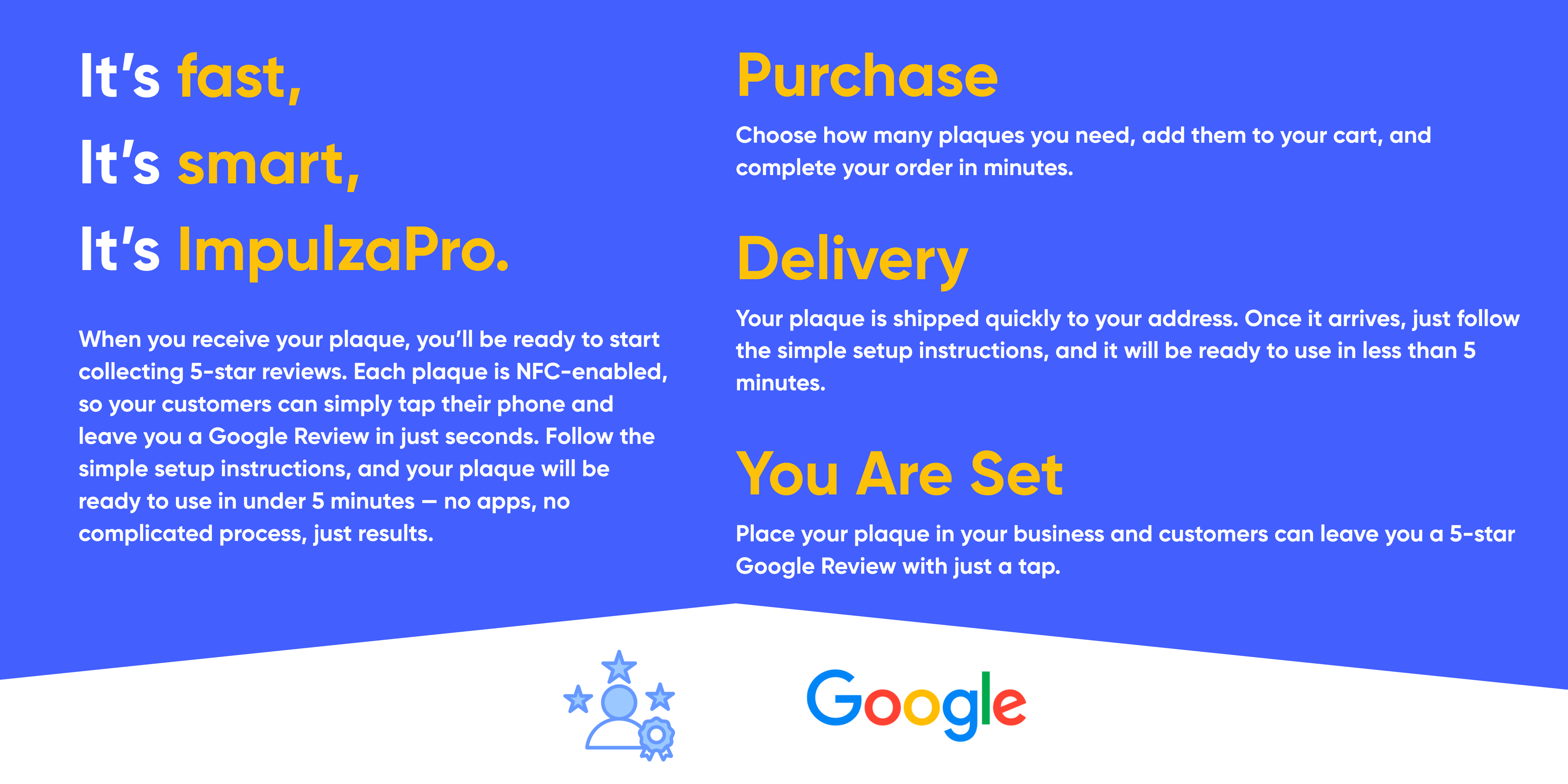 Trusted by over 15,000+ customers worldwide, ImpulzaPro Google Review Cards & Plaques continue to make an impact globally.