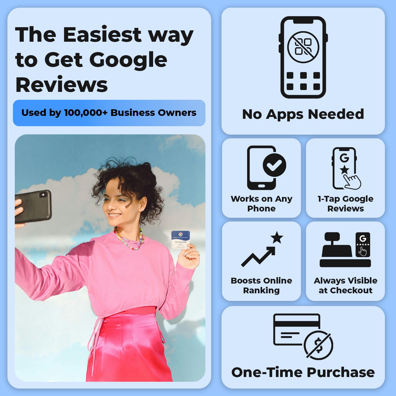 Each plaque is NFC-enabled. Your customers simply tap their phone on the plaque and it opens your Google Business review page instantly — no apps, no QR codes, no complicated steps.
